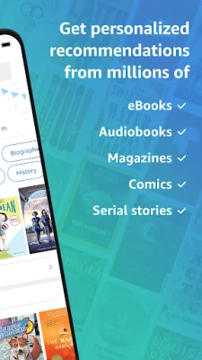 اكتشف قراءتك العظيمة التالية بكل سهولة. يفتح تطبيق Kindle أبوابًا لعوالم لا حصر لها، من أحدث الإصدارات إلى الكتب الأكثر مبيعًا على Amazon Charts، وعبر أنواع متنوعة تشمل الرومانسية والخيال العلمي وكتب الأطفال والتنمية الذاتية والمزيد. تصفح آلاف العناوين المشمولة ضمن عضوية Amazon Prime، أو انغمس في عالم القراءة والاستماع اللامحدود مع Kindle Unlimited الذي يضم أكثر من مليون عنوان وآلاف الكتب الصوتية والمجلات الحالية. ولتتأكد من اختيارك، يقدم لك التطبيق عينات مجانية لأي كتاب قبل شرائه من Amazon.com.