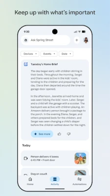 هل تتمنى لو أن منزلك يحدثك بما يدور فيه؟ يقدم لك تطبيق Google Home تجربة فريدة تمكنك من البقاء على اطلاع دائم بكل تفصيل، وكأنك لم تغادر أبدًا. صُمم Google Home ليمنحك رؤية شاملة وفورية لكل الأحداث الجارية، مع ضمان عدم تفويتك لأي لحظة مهمة، وذلك بتجميع كل ما يخصك في مكان واحد يسهل الوصول إليه، لتعيش راحة البال والتحكم الكامل بمنزلك بلمحة بصر.